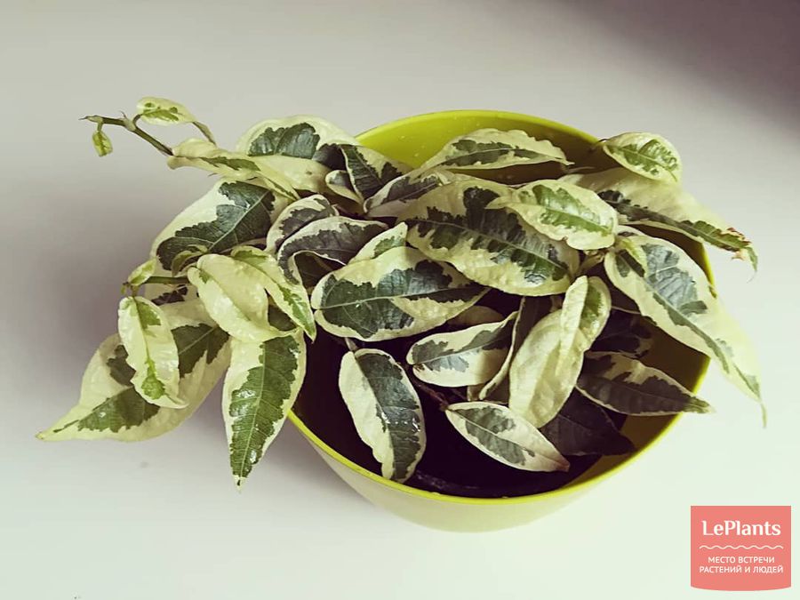 Самая популярная разновидность этого Фикуса, очень ценится своими привлекательными пёстрыми листьями: они серовато-зелёные с отметинами цвета слоновой кости.