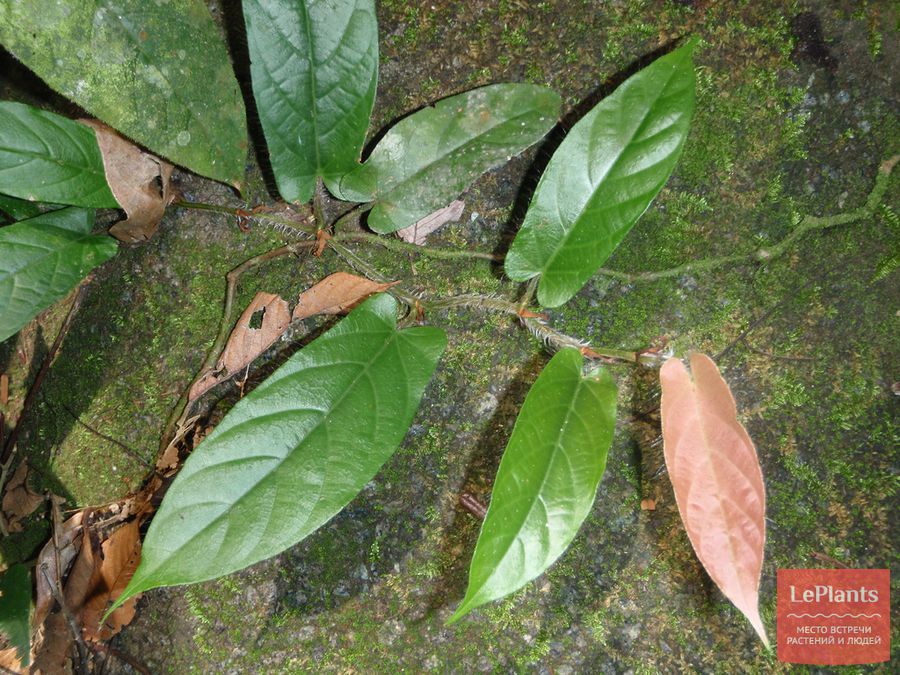 Фикус стреловидный (Ficus sagittata) — вечнозелёное растение с длинными, ползучими, укореняющимися побегами.