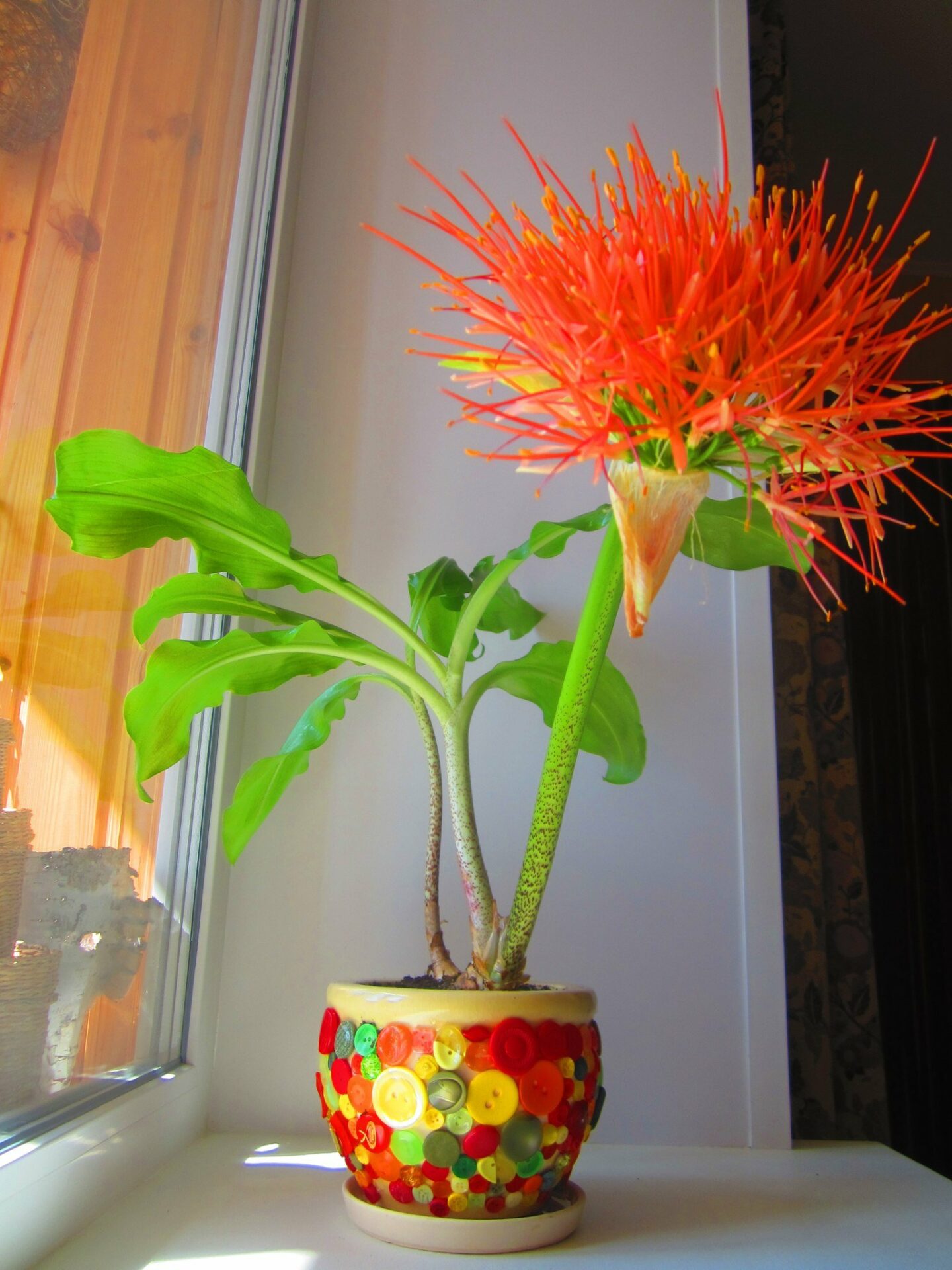 - Гемантус легко переживает теплые летние месяцы на светлом балконе или террасе.