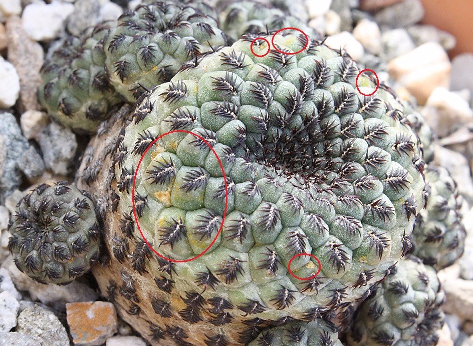 Мучнистый червец – это небольшой червеобразный вредитель, который поселяется на корнях и стеблях растения и высасывают из него все соки. Они селятся на гимнокалициумах также, как и на других растениях в этом семействе. Их можно с легкостью увидеть невооруженным взглядом, особенно на ровной поверхности растения, поскольку тельца у них розоватые и покрыты воздушным слоем, похожим на вату.