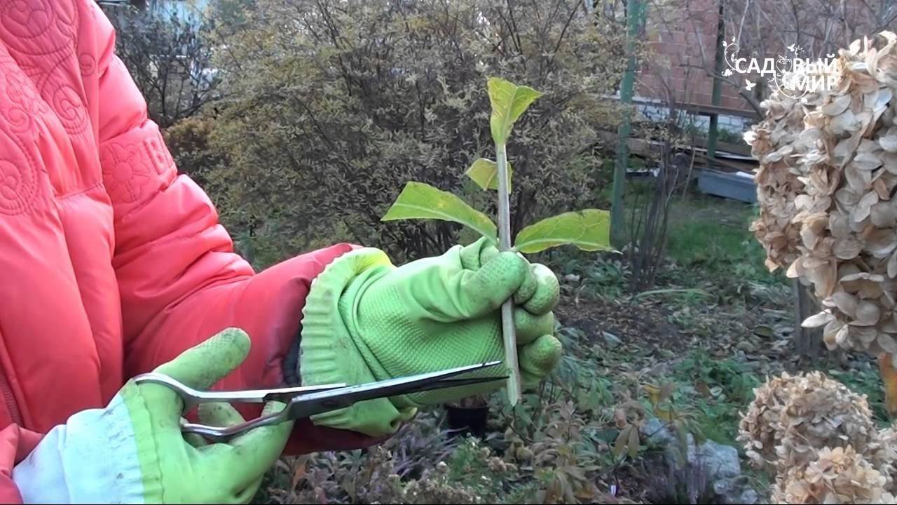 Чтобы как вырастить гортензию в саду правильно, как того требует правильная агротехника, к зимнему укрытию надо готовиться заблаговременно до наступления морозов. В конце октября снимают с растения все соцветия и листья. Куст стягивают верёвкой в снопик и укладывают его на землю, закрепив в таком положении ящиком или низкими дугами. Почву под снопиком и вокруг него тщательно укрывают листьями, а на ящик или дуги укладывают лапник или несколько слоёв лутрасила, который закрепляют, чтобы не размотал ветер. Весной после схода снега в тёплый день укрытие снимают, убирают ящик или дуги, развязывают куст и снова накрывают сверху двумя слоями лутрасила. Весной укрытие снимают постепенно.