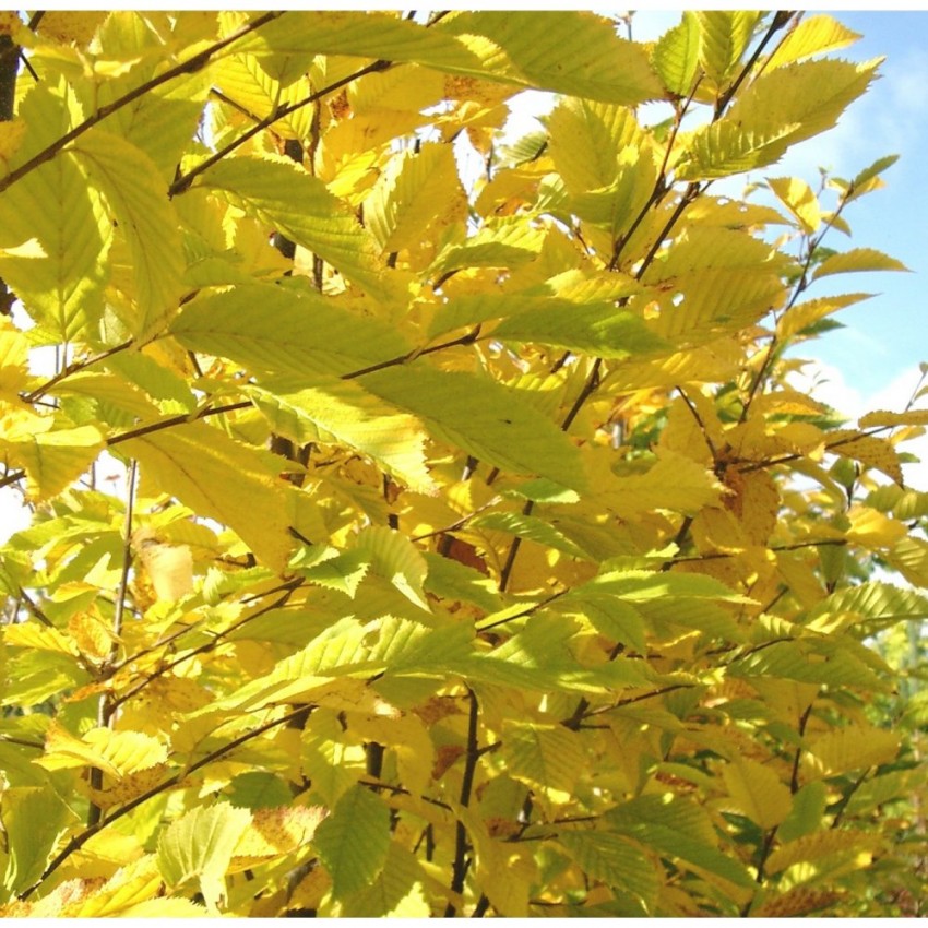 Размер листьев зависит от сорта дерева. Бывает длиной от 5 до 15 см. По краю они оформлены зубчиками, цвет насыщенный, зеленый. С тыльной стороны лист покрыт мягкими ворсинками, снаружи он гладкий, с сеткой прожилок. Буйство цвета в осенний период заставляет смотреть на граб с восхищением.
