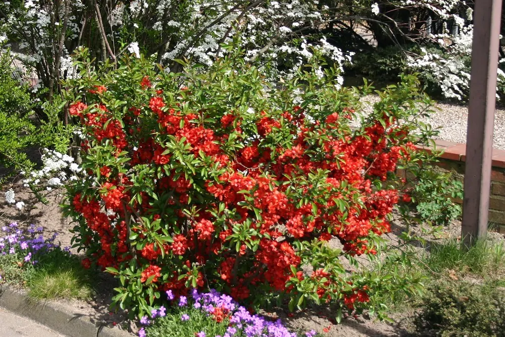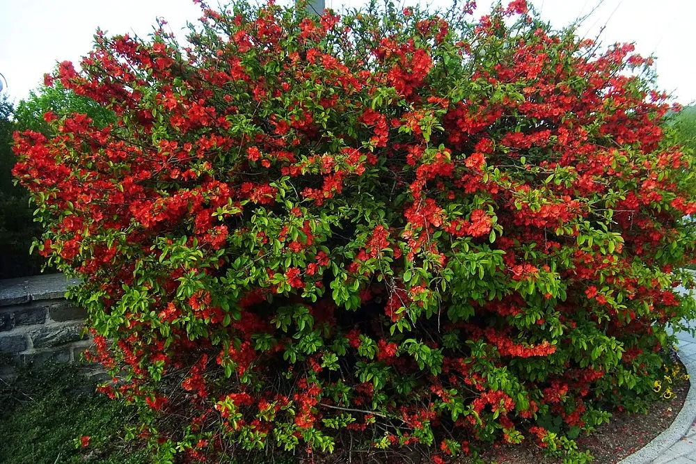 Невысокий кустарник с обильным ветвлением и красивой, практически шарообразной кроной. Цветение обильное, насыщенно-красное.