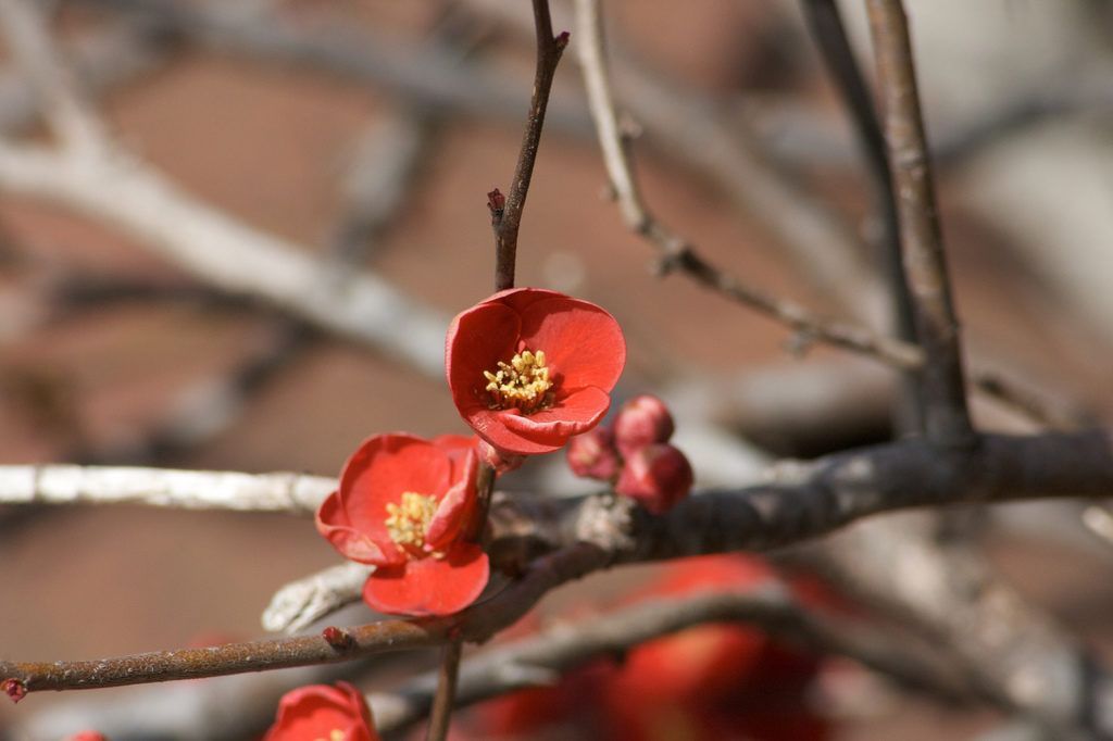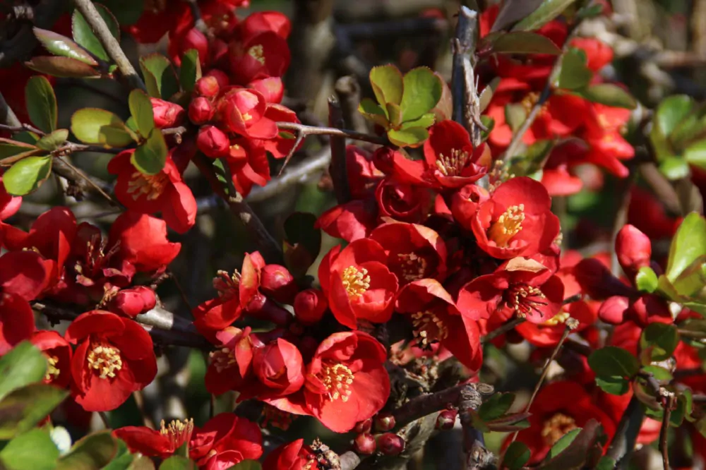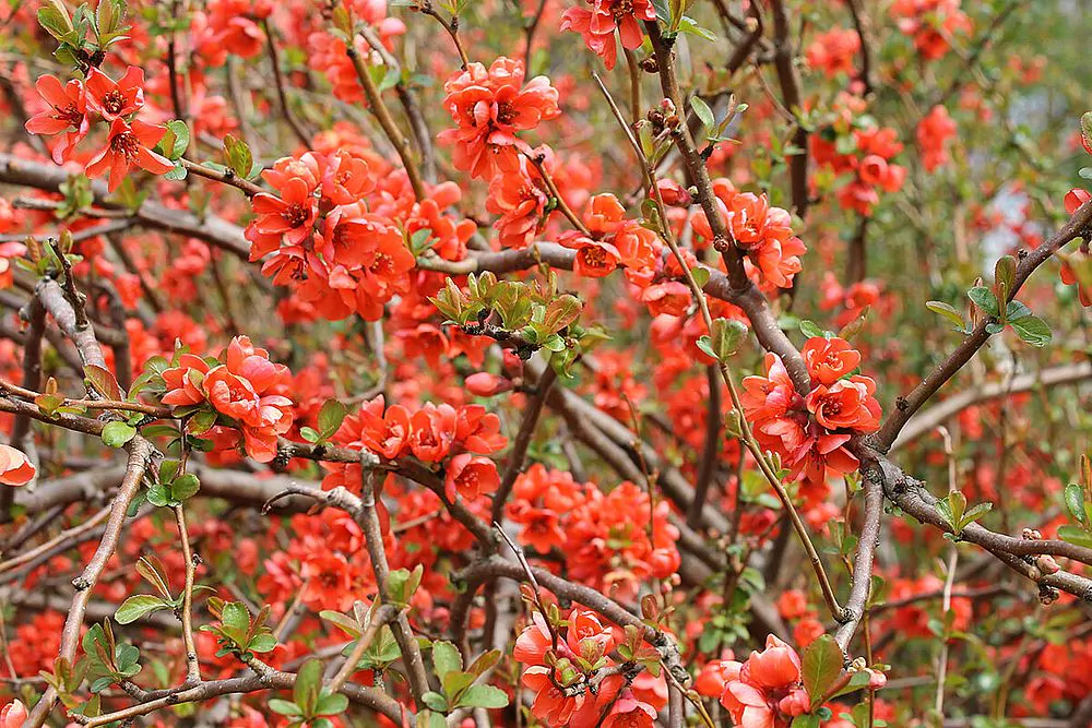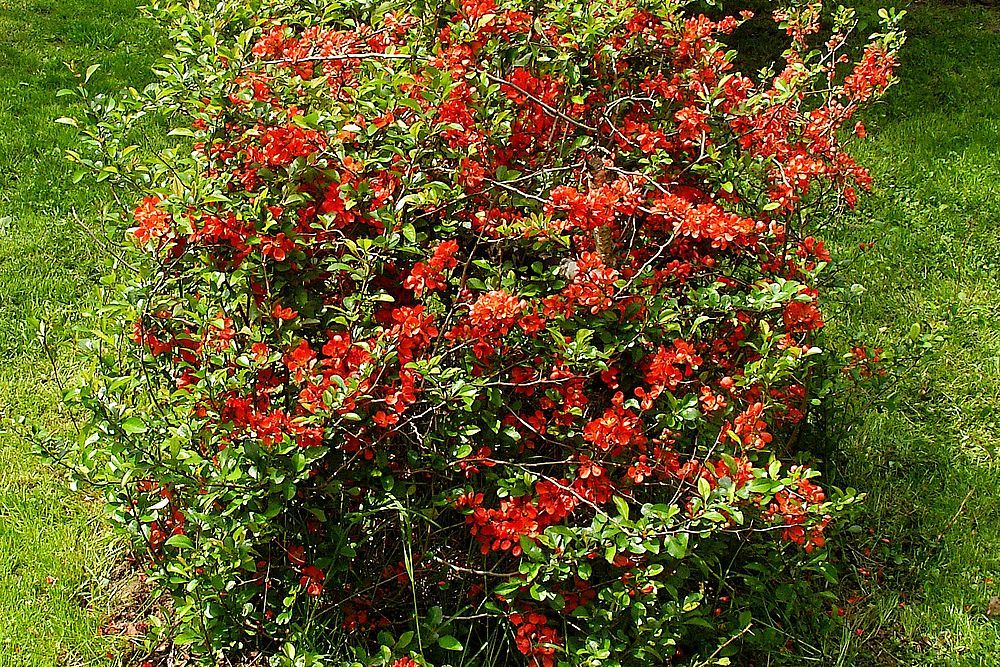 «Crimson and Gold» — один из самых ценных сортов айвы великолепной с темно-алым цветением и ветвистыми побегами.
