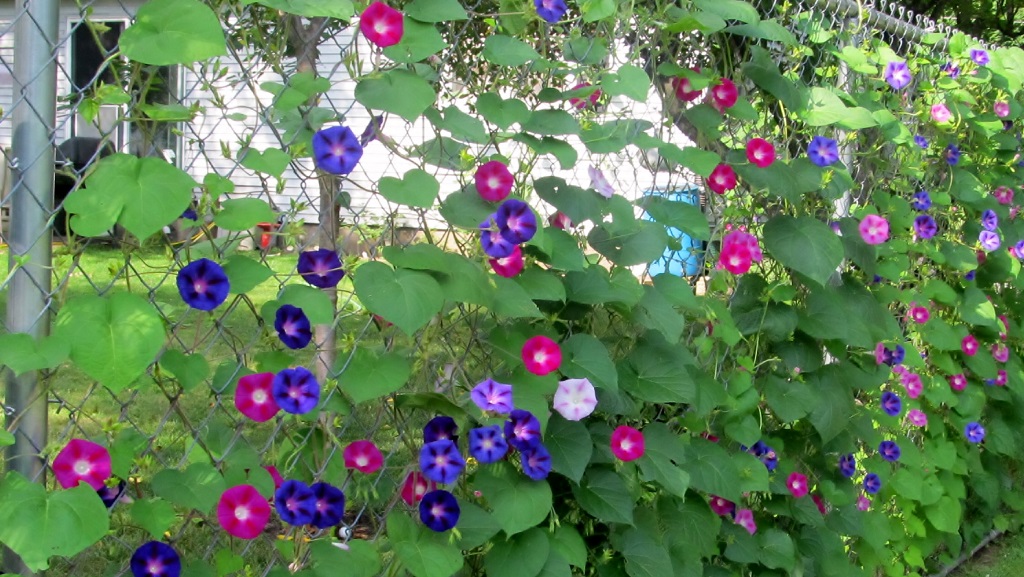 Ипомея прекрасно сочетается с другими растениями, используемыми для вертикального озеленения: кампсис, дикий виноград, плющ, хмель. Нарядно смотрится она при соседстве с лиственными деревьями.