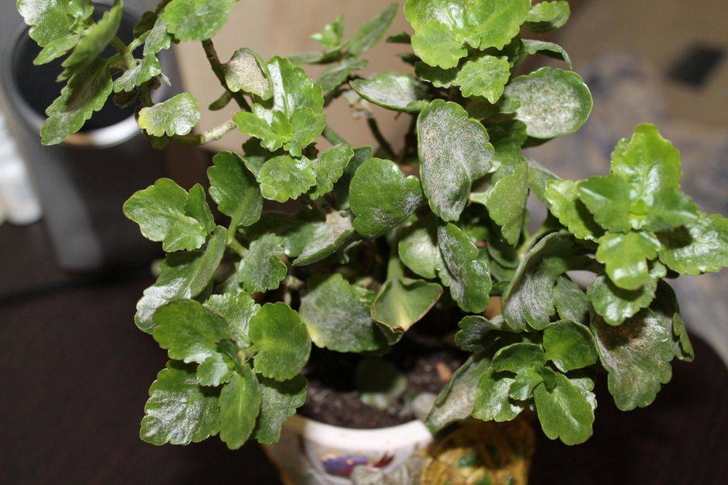 Фитофторозная гниль проявляется в виде бурого налета, который покрывает стебли. Влияет на развитие растения и приводит к задержке роста. Необходимо установить в помещении оптимальную температуру и обработать каланхоэ фунгицидом.