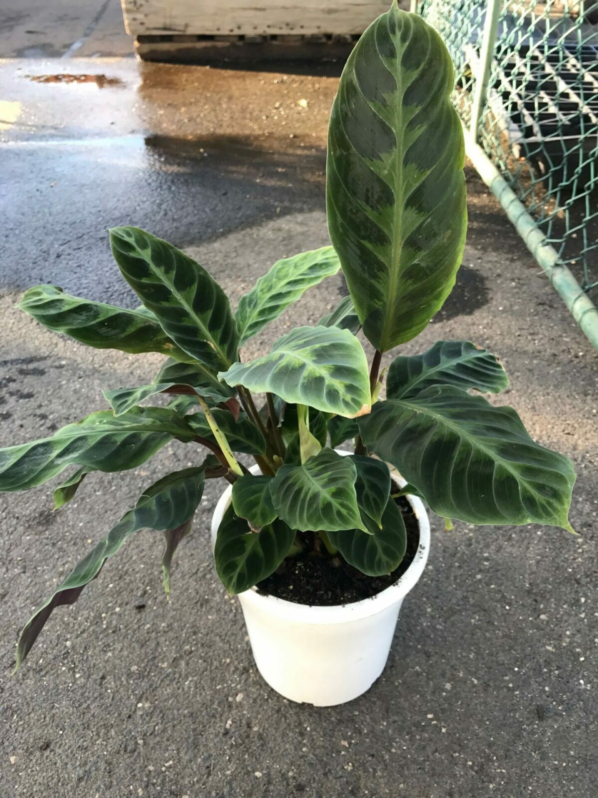 Калатея вейча (или калатея вича) – крупное растение высотой до 90 см с листьями до 30 см. Листья скруглённые и имеют двойной узор в центре и ближе к окаёмке.