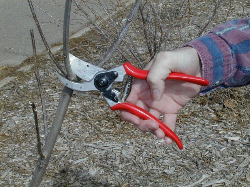 обрезка. Манипуляция требуется для того, чтобы омолодить деревце и сформировать крону. Рекомендуется срезать все старые ветки на высоте 15-20 см от поверхности почвы. Обрезать ветви следует весной, перед началом сокодвижения, либо осенью, после завершения листопада. Выполнять такие «омолаживающие» процедуры нужно только после второго года с момента высадки деревца в грунт, иначе это не пойдет на пользу кустарнику. Если есть желание сформировать куст с несколькими стволами, то его нужно еще в молодом возрасте обрезать до уровня пня, оставив около 20 см. Благодаря такой манипуляции происходит стимуляция роста боковых веток.
