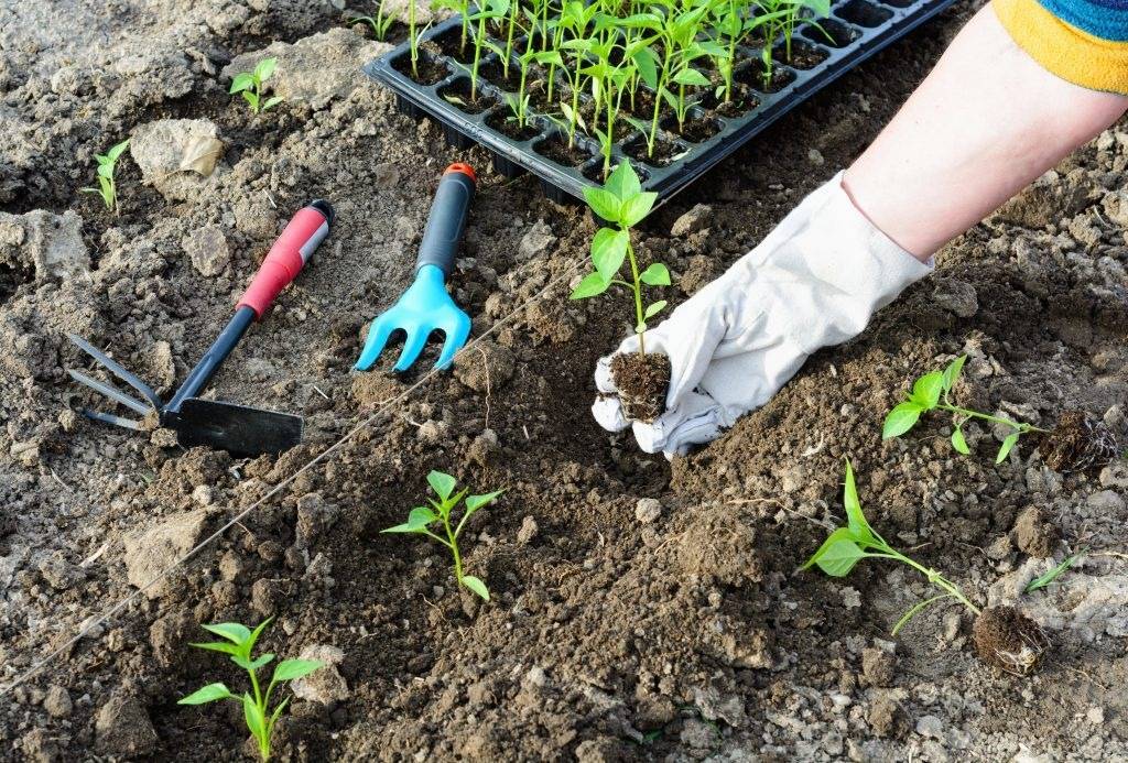 Перед посадкой подготовьте лунки, которые должны быть немного больше, чем размер горшка с рассадой. Расстояние между лунками должно быть около 20-40 см.