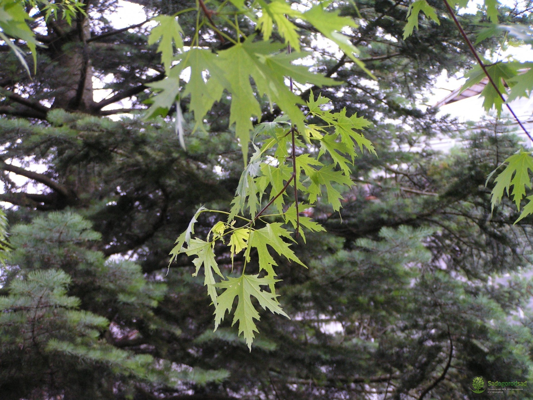 - Acer saccharinum «Серебряная королева» — листья ярко-зеленовато-желтые с почти белой нижней стороной.