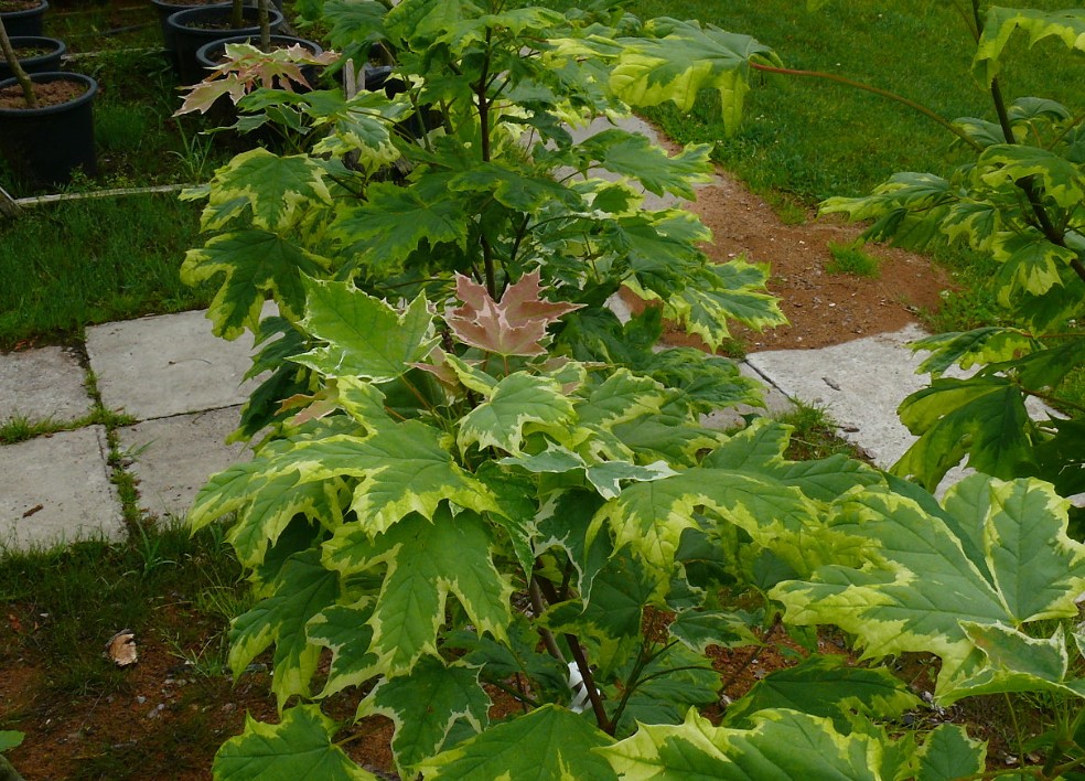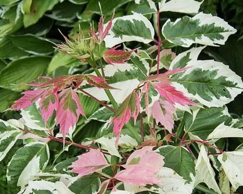 Ясенелистный | Низкорослое дерево с округлой кроной. Имеет сложную форму листьев, окрас их зеленый с белой каймой и розовыми пятнами. | Используется для высадки вдоль дорожек. |