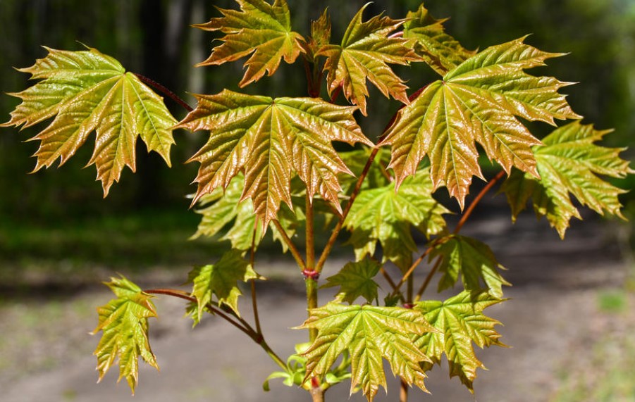 | Листья | С 5-7 лопастями, хорошо выраженными дугами прожилок, насыщенного зеленого цвета. К осени становятся желтыми с красновато-багряным оттенком. |