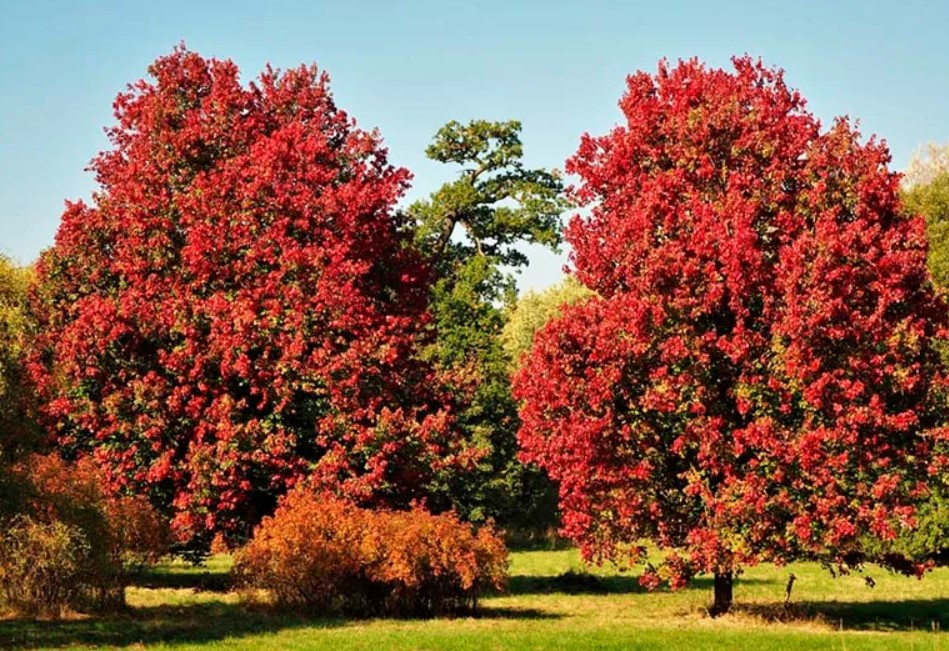 Красный | Высокорослое дерево 12 м с закругленной пирамидальной формой кроны диаметром 7 м. Имеет зеленые (осенью ярко алые) листья и темно-красные соцветия. | Подходит для любого ландшафтного решения. |