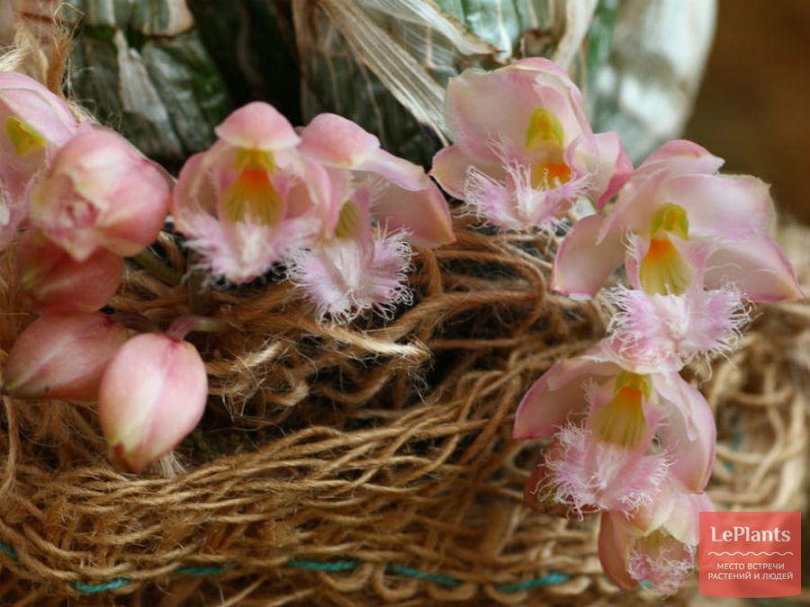 Полив начинают в конце зимы – весной, только после того, как корни нового побега войдут в субстрат. Для посадки лучше использовать небольшую корзинку с эпифитным субстратом. В период интенсивного роста необходимо регулярно удобрять растение.