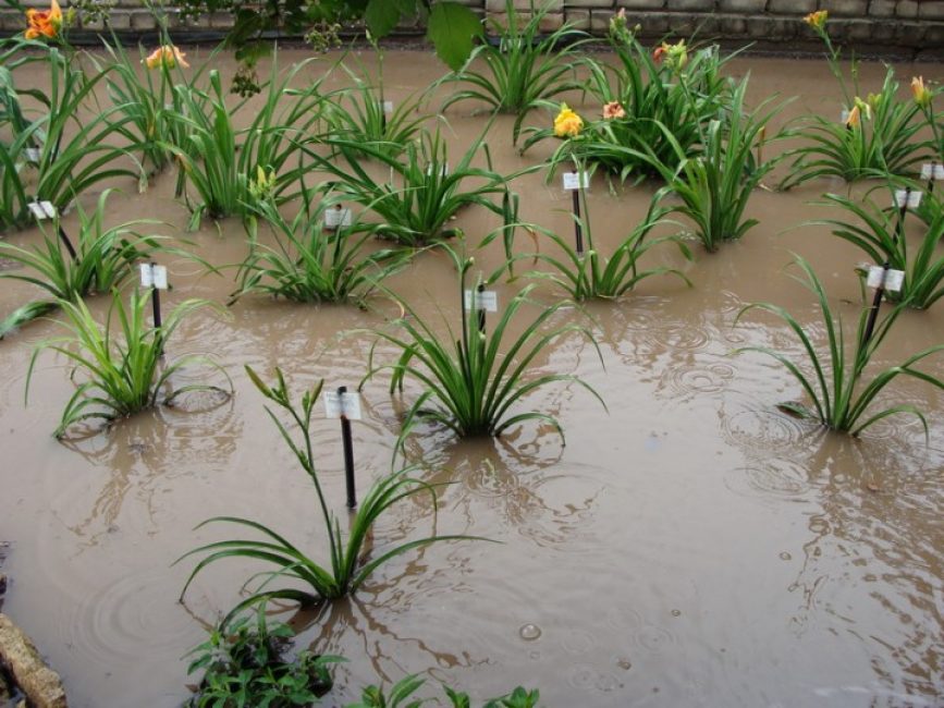 Поэтому особенно опасен застой воды после таяния снега или обильного дождя, когда растение залито водой на 2-3 см выше поверхности почвы. Чтобы этого избежать, лучше всего высаживать лилейники на приподнятые грядки.