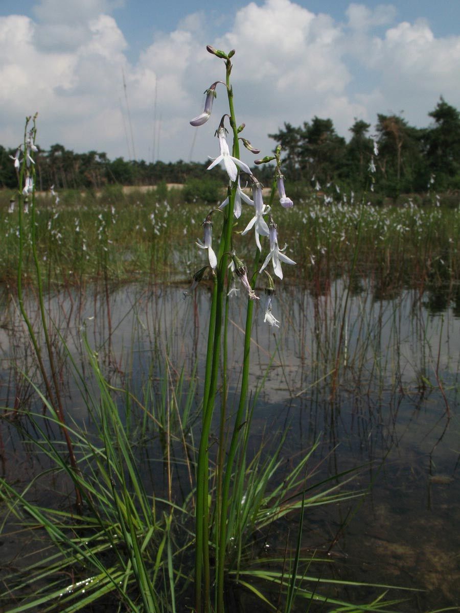 Лобелия Дортмана (Lobelia dortmanna) — исчезающее растение, занесенное в Красную книгу. В природе многолетнее растение обитает по берегам озер и рек, а также в водоемах на глубине 70-80 см. После того, как стебли растения достигают водного покрова, начинается цветение. Цветки лобелии Дортмана колокольчатые белого, синего цвета.