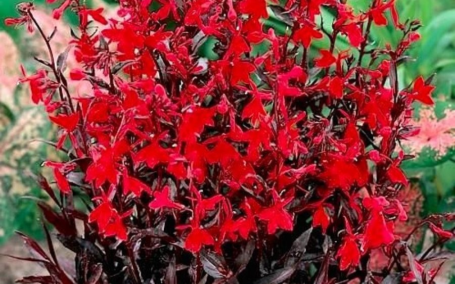 Пурпурная лобелия (Lobelia cardinalis), также известная как кардинальная лобелия. Эффектный сорт растения, выращиваемый во влажных местах или на берегах водоемов. Высота побегов до 80-90 см, колосовидное соцветие состоит из пурпурных цветков. Lobelia cardinalis выращивают в основном как садовое растение, реже как аквариумное. В диком виде растет в Северной Америке. Алая лобелия не совсем морозоустойчива, на зиму ее необходимо укрывать или переносить в прохладное светлое помещение. Цветет с июля до первых заморозков.