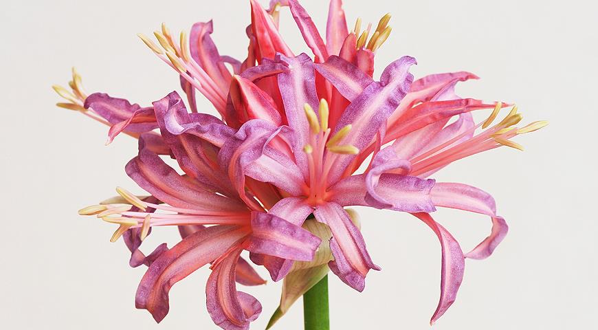 - Редко у нас в продаже можно встретить нерине сарнейскую (Nerine sarniensis). Цветки у нее более разнообразны: в культуре распространены гибриды и сорта Wolsey (ярко-алые цветки), Rushmere Star (ярко-розовые), Cynthia Chance (оранжевые), Blanchefleur (белые).
