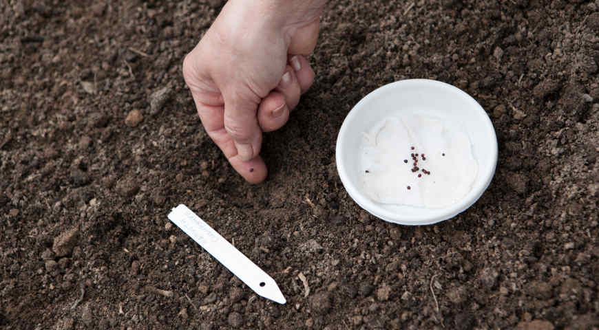 Технология посева семян достаточно проста. Для того чтобы предотвратить загущение и высадку большого количества семян в одном месте, семенной материал смешивают с песком. Почву предварительно хорошо увлажняют, разравнивают верхний слой и проделывают канавки глубиной не более 0,5 см. Чтобы ряды получились прямыми, а цветы было бы легко отличить от сорняков, опытные садоводы натягивают шнурок, и уже по нему прокладывают бороздку.