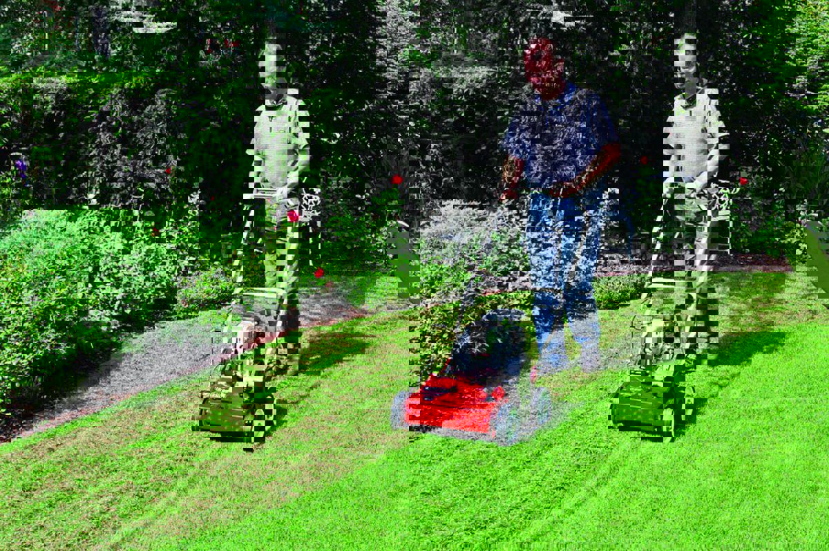 Другое дело – если применить колесную газонокосилку. Колесная газонокосилка передвигается прямо, а не слева направо, как триммеры.