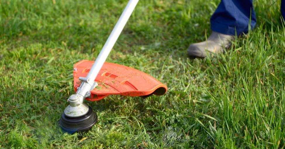 2. Триммер или кордовая газонокосилка. Этот механизм как нельзя лучше подходит для небольших участков, для кромок больших газонов и для труднодоступных мест. Срезка травы триммером осуществляется посредством быстро вращающейся лески.