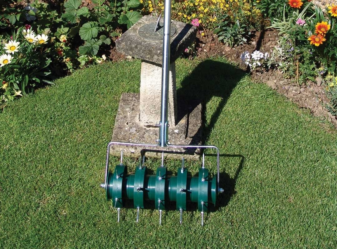 Время от времени грунт под травяным покровом нужно прокалывать и рыхлить, для увеличения доступа кислорода, влаги и удобрений к корням травы. Для прокалывания газона разработан специальный, игольчатый инструмент, которые называют аэратором.