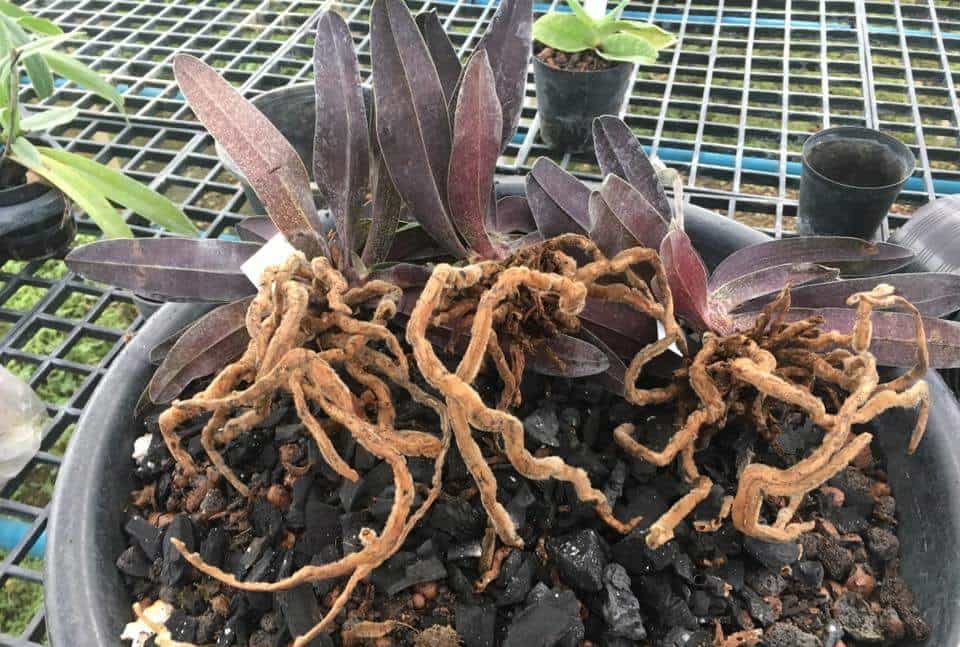 Нужно поддерживать баланс между еще влажными корнями орхидеи и подсохшим субстратом во избежание загнивания корневой системы.