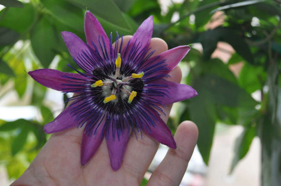 В длину растение достигает 10 м. Его цветки могут окрашиваться в любые оттенки, но чаще всего можно полюбоваться лепестками фиолетового цвета. Этот вид также плодоносит: у него насыщенные желтые плоды с приятным кисло-сладким вкусом. Больше остальных пассифлору инкарнату оценили медики, поскольку высушенные части растения с успехом применяются для приготовления чая от бессонницы, эпилептических припадков и неврозов.