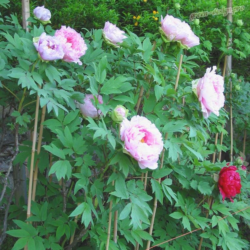 Этом бесподобным кустарником часто украшают всевозможные ландшафтные дизайны. Пион украсит собой любые горки, и альпинарии, прекрасно уживается с растениями и кустарниками в миксбордерах. Часто компонуют с другими сортами пионов, с учетом их цветения в разное время, высаживают пион тонколистный и по одиночке, что не умоляет великолепия.