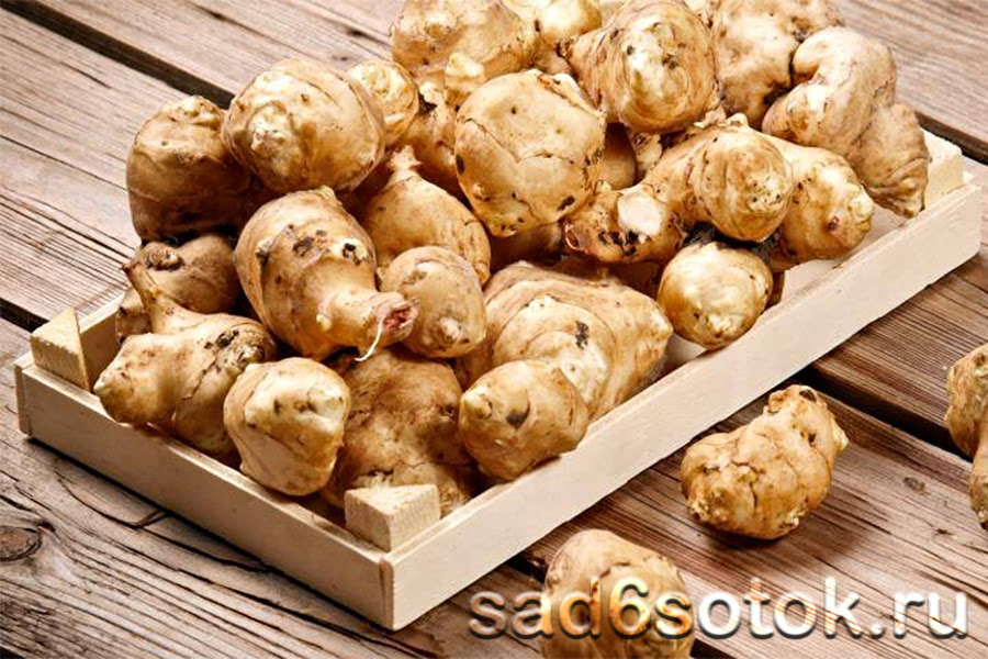 Хранение топинамбура происходит так, как и хранение корнеплодов – в ящике с песком. Перед тем, как хранить топинамбур в погребе, выкопанные клубни сначала промывают и хорошо просушивают. Если у вас нет погреба, поставьте ящик на лоджии или утепленном балконе. Небольшое количество клубней можно держать в овощном ящике холодильника.