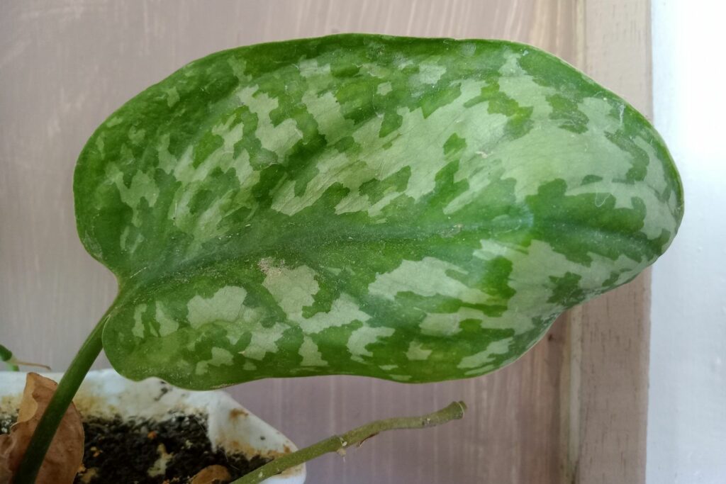There are several varieties of satin pothos that differ predominantly in their leaf pattern. In some cases, a Scindapsus pictus variety may seem almost completely silver, and barely green at all.