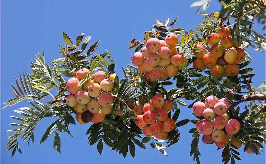 В странах Северной Европы растет разновидность рябины с овальной кроной, достигающая во взрослом возрасте 20 м в высоту. Ствол и побеги культуры покрывает гладкая кора серого цвета. Цельные листья отличаются удлиненный формой, в основании разрезаны на лопасти, осенью меняют зеленый оттенок на яркие алые и оранжевые тона. Зацветает рябина Шведская в начале июня, радует крупными белоснежными щитками на протяжении 2 недель. Ярко-красные как огоньки ягоды поспевают к концу августа, употребляются в еду.