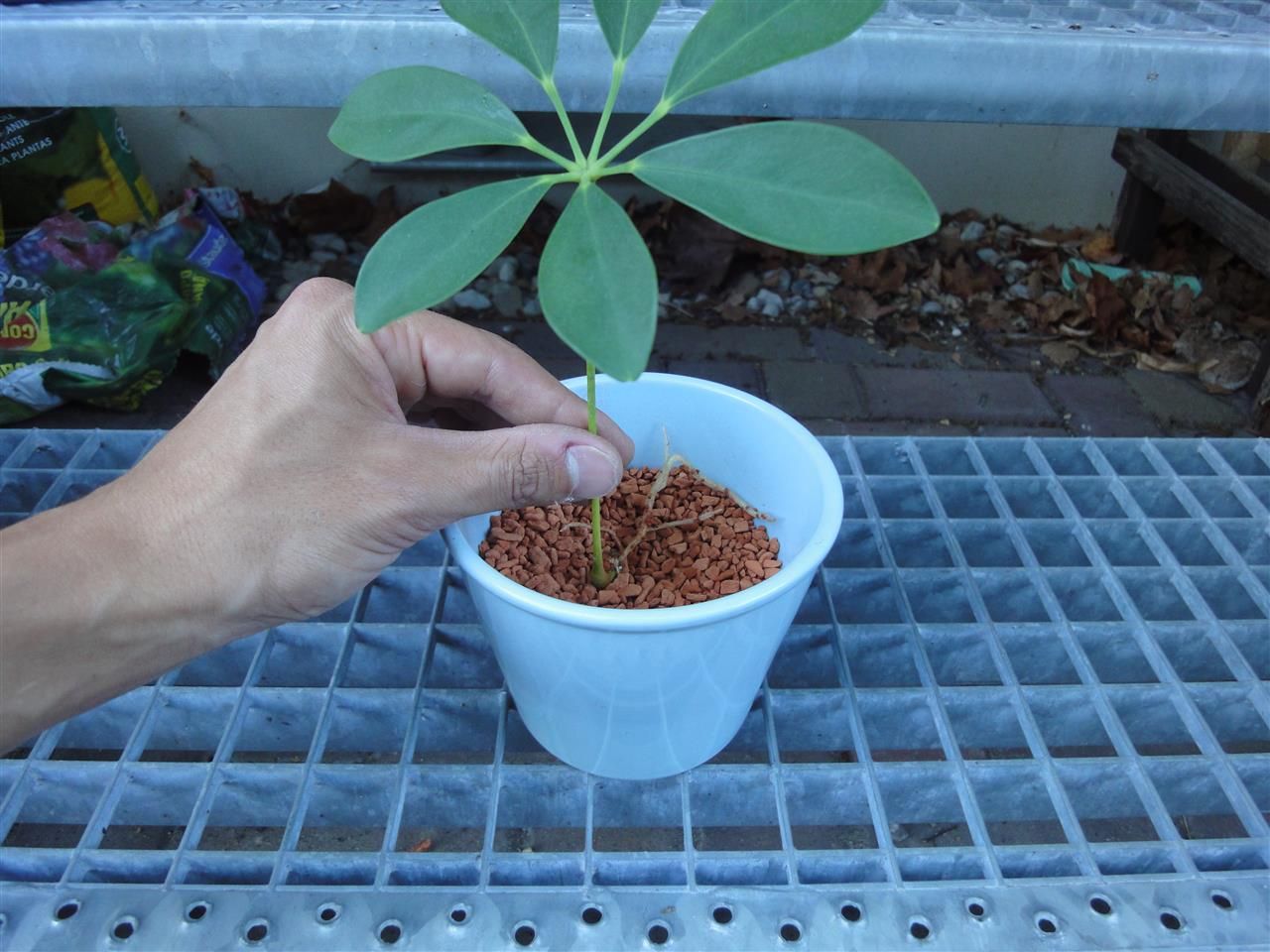 Молодые «Шеффлеры» обычно продают рассаженными в тонкие пластиковые емкости с торфом или другим легким субстратом. Можно дать растению несколько дней, чтобы привыкнуть к новым условиям, а затем нужно пересадить в горшок большего диаметра с толстым слоем дренажа и подходящим грунтом.