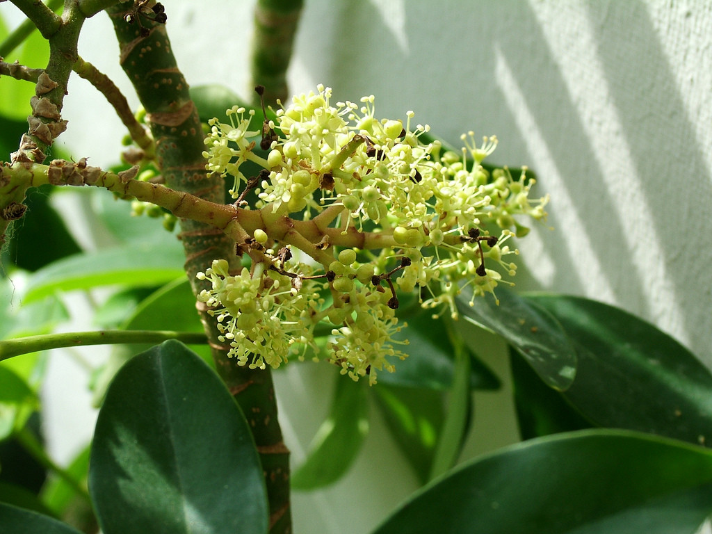 Период цветения длится с июля по октябрь. В комнатных условиях трудно добиться цветения шеффлеры. Она цветет в естественной среде или в оранжерейных садах, где можно воссоздать близкие к диким условия.
