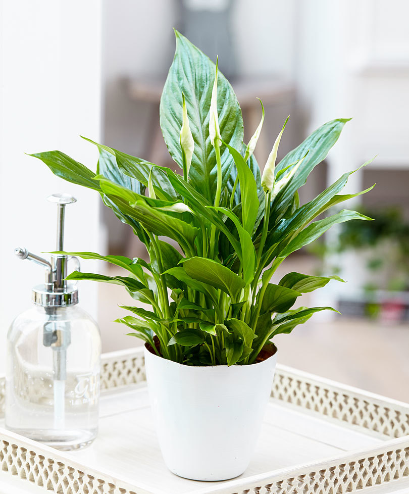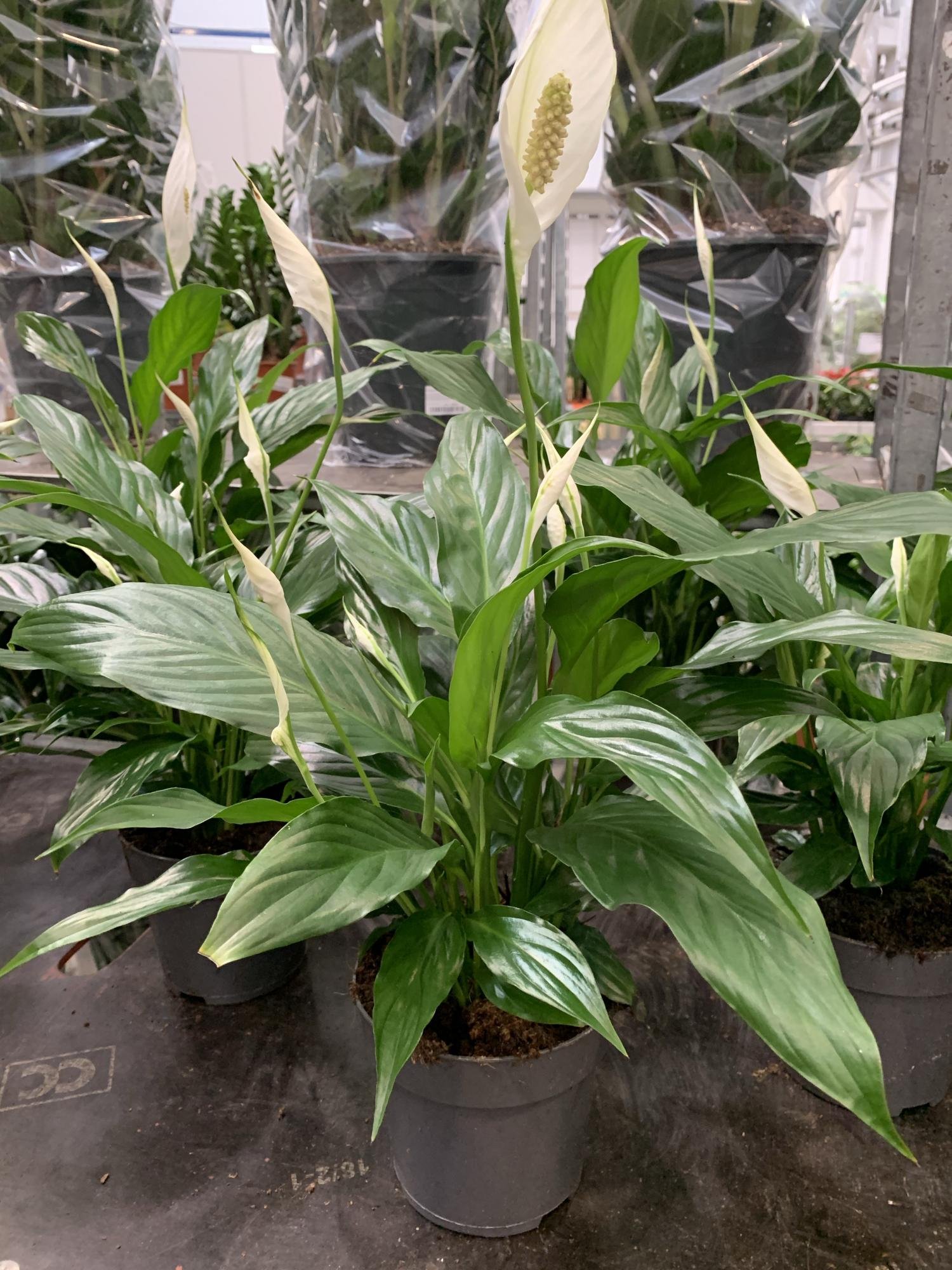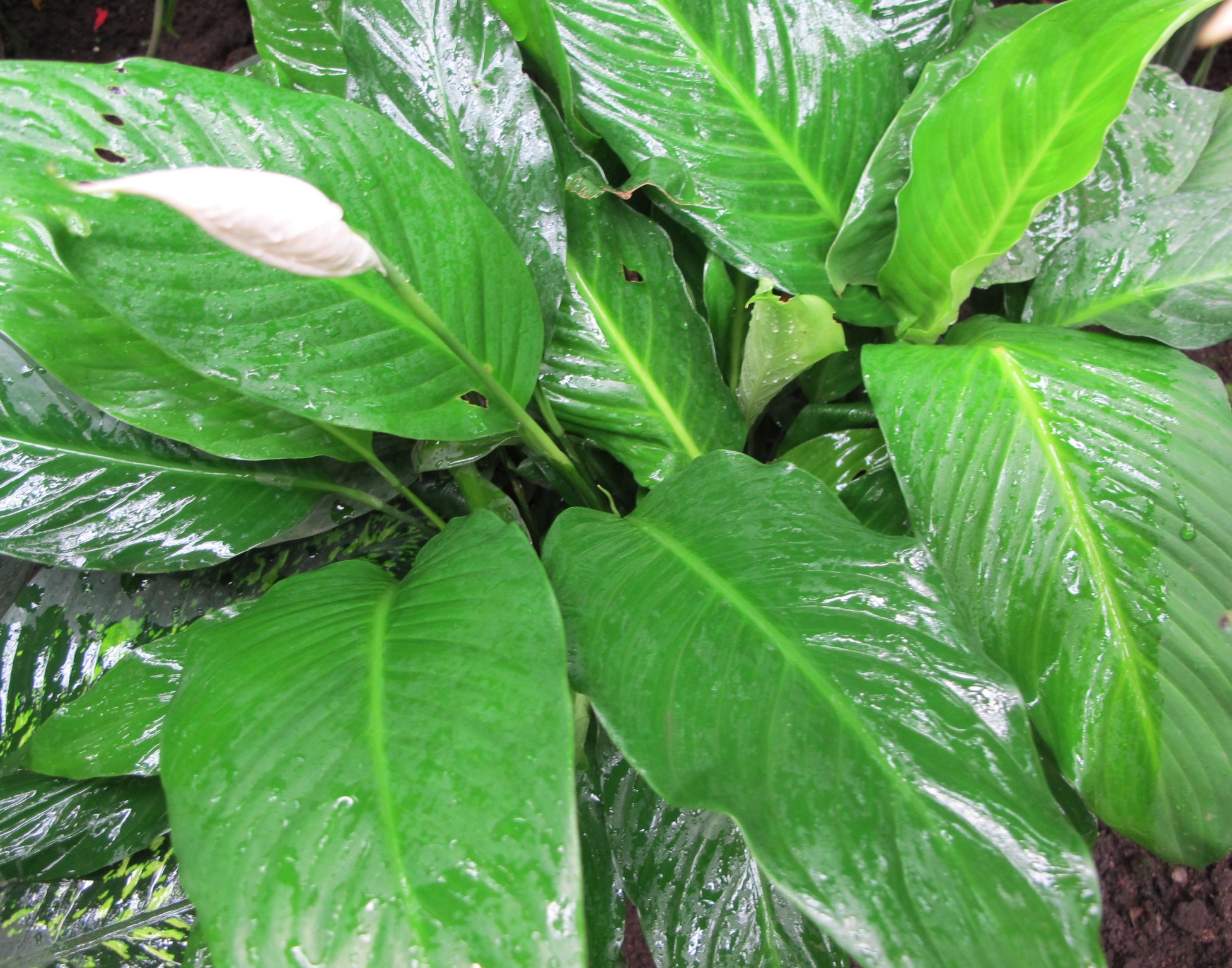 - Спатифиллум Уоллиса (Spathiphyllum wallisii) – всё растение высотой 30-40 см, коротким корневищем и розеткой темно-зеленых продолговато-ланцетных изящных листьев. Початок белый, покрывало узкое, втрое длиннее початка, сначала чисто-белое, затем зеленеющее. Цветение обильное, продолжительное. Растения неприхотливы, теневыносливы.