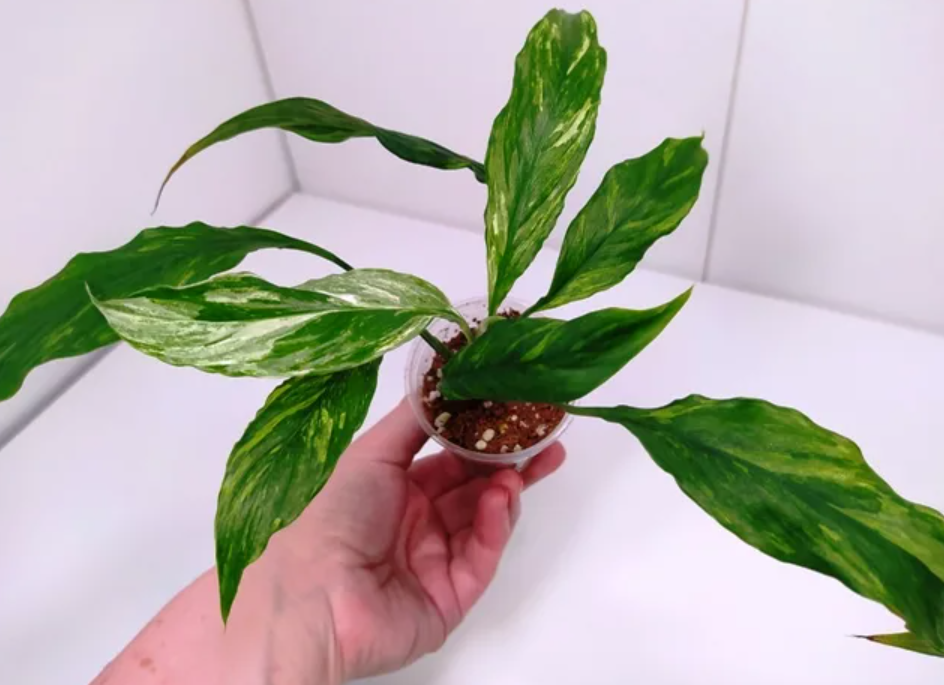 Их противоположность – великолепный гибрид «Мауна Лоа», который вырастает до 1 метра или эффектный пестрый и широколистный сорт спатифиллума «Даймонд Вариегата» (Diamond Variegata).