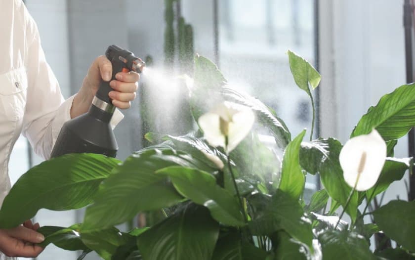 Обязательно увлажняй не только почву, но и листья растения. Спатифиллум нуждается в постоянных опрыскиваниях и высокой влажности в комнате. Чтобы поддерживать стабильный режим, ставь вазон на поддон с мелким мокрым керамзитом. В летнюю жару не лишним будет теплый душ, потому что даже при регулярном опрыскивании 2-3 раза в день листья пересыхают.