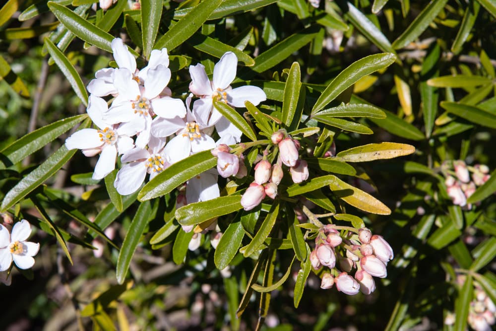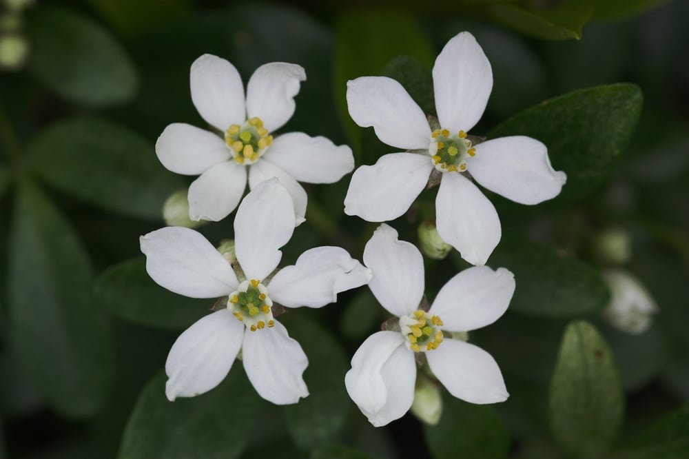 Mexican orange blossom produces small, star-shaped white flowers