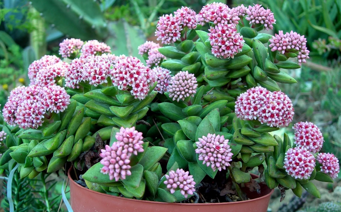 - Толстянка Шмидта – небольшое, но достойное внимания комнатное растение. Характеризуется более возвышенным побегами, ланцетными листьями и розовыми цветками. Учитывая небольшие требования, рекомендуется для домашних коллекций, цветочных композиций и не только.