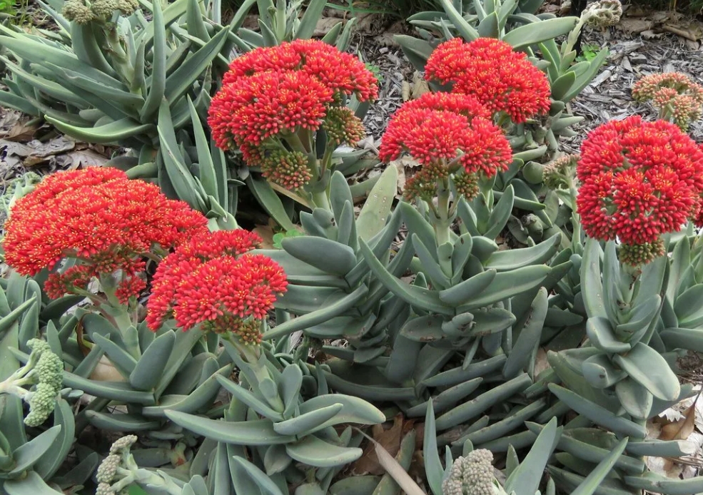 - Толстянка алая – редкий вид, но интересный и декоративный. Красные, многочисленные в форме звездочек цветки появляются весной. Вид без особых требований, но зимой предпочитает более прохладное помещение.