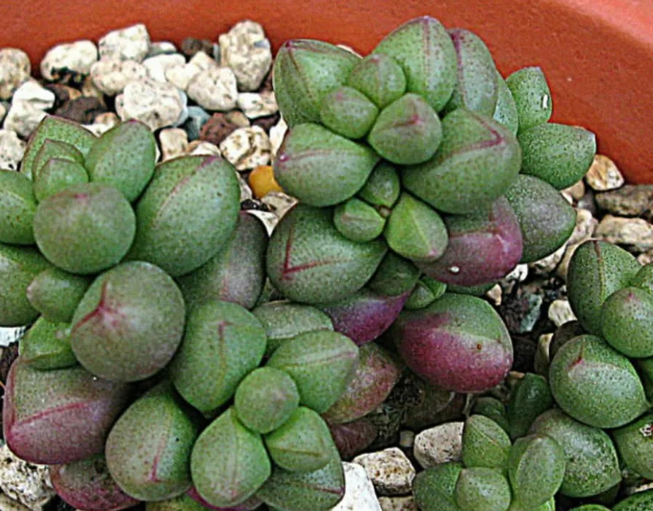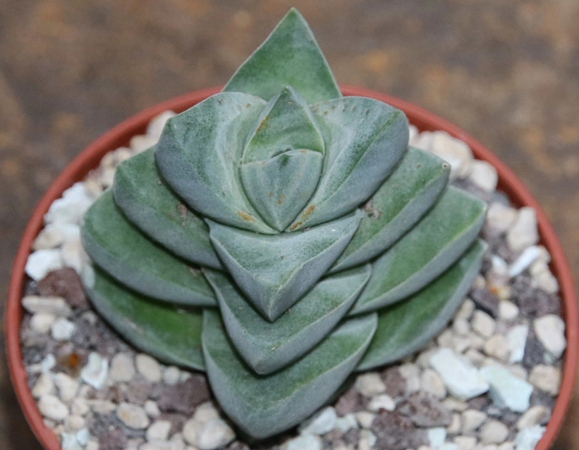 Заостренные треугольные плотно сложенные листья капителлы делают ее похожей на пропеллер в миниатюре. Вырастает до 20-30 см и со временем стелется по грунту. Мясистые листья сочно-фисташкового цвета, на солнце становятся бордовыми. Между ними часто появляются детки.