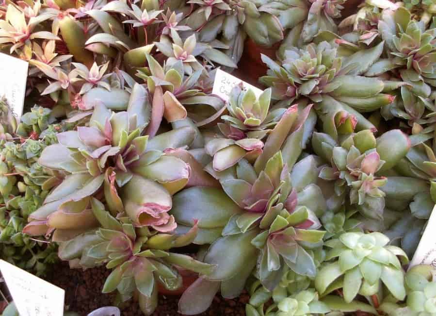 Этот сорт также предпочитают сажать в Европе в качестве однолетника. Он схож с Толстянкой Шмидта. Только листья у него приплюснутые, снизу закругленные, а края с ресничками. Цветущее растение образует яркие карминные бутоны с красноватыми соцветиями.