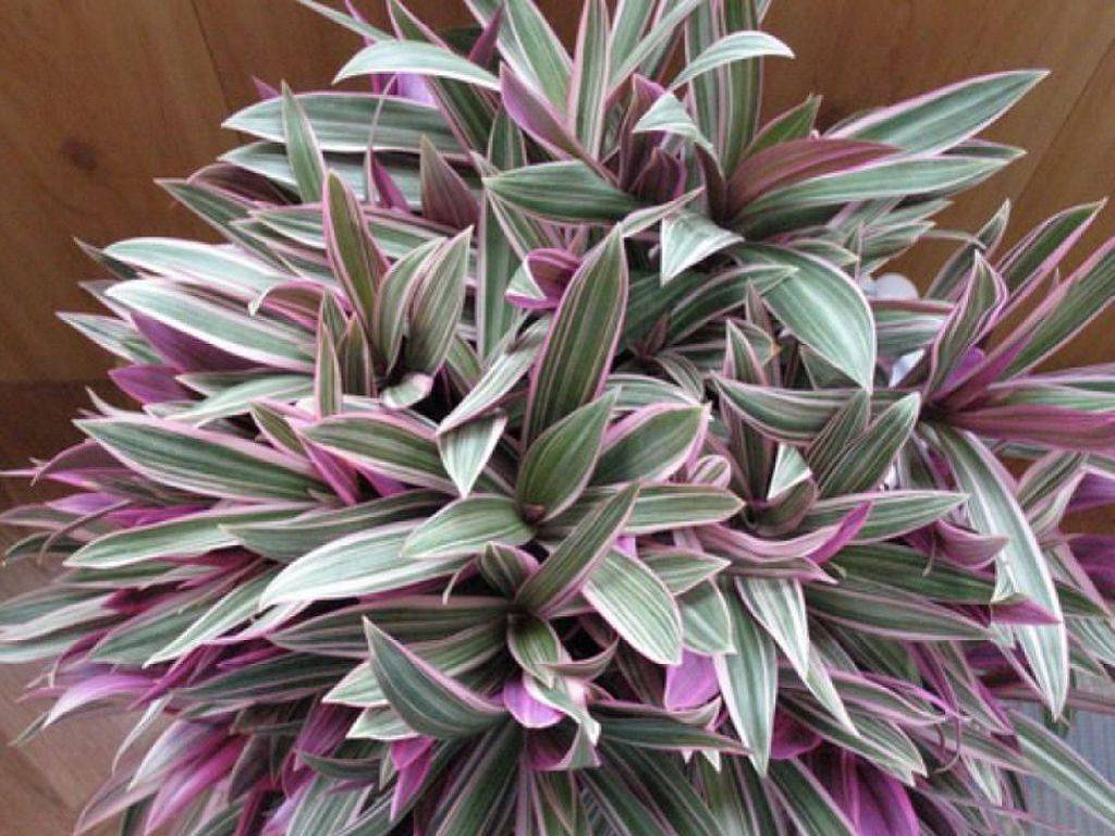 Традесканция бледная пурпурная или сеткреазия — комнатная фиолетовая традесканция с насыщенным цветом стеблей и листьев. Матовые ворсистые листья имеют ланцетно-заостренную форму и в длину достигают 15-17 см. Цветы мелкие с розовым оттенком. Прочные стебли сеткреазии хорошо разветвлены. Используется как почвопокровное или ампельное растение.
