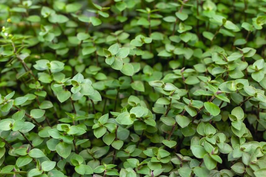 Традесканция мелколистная или каллизия — многолетняя ползучая трава с приподнимающимися или прямостоячими стеблями. Хорошо поддается формировке в виде шара. Для нее характерны миниатюрные двухцветные листья длиной в 3-3,5 см. Сверху они темно-зеленые, с обратной стороны – фиолетово-зеленые. Побеги также окрашены в зелено-фиолетовый цвет. Чем моложе стебель, тем больше в нем выражен пурпурный оттенок. Стебель обладает лекарственными свойствами.