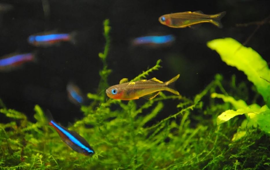 В качестве декоративных элементов используются различные коряги, камни и водная растительность. Это один из важнейших элементов, так как рыба должна иметь укромное место, где можно спрятаться в случае опасности. Без укрытия вся стая будет метаться по аквариуму при любом звуке или резком движении. В результате популяция может погибнуть.