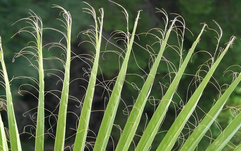 Листья пальмы виноградной лозы, с другой стороны, имеют форму веера с мелкими зубчиками на краях листа и меньшей длиной лопастей.
