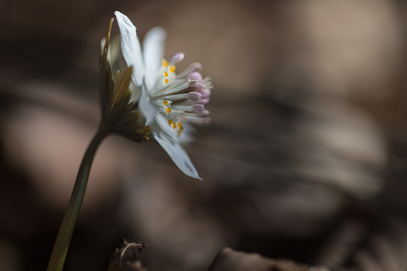 Родом с Дальнего Востока, где его из-за красоты уничтожают. Кустик высотой 20 см с безлистным стеблем и одиночным цветком с крупными белыми лепестками с сизо-фиолетовым налетом внизу. Выдерживает тенистые места, цветение приходится на апрель и длится 10 дней.