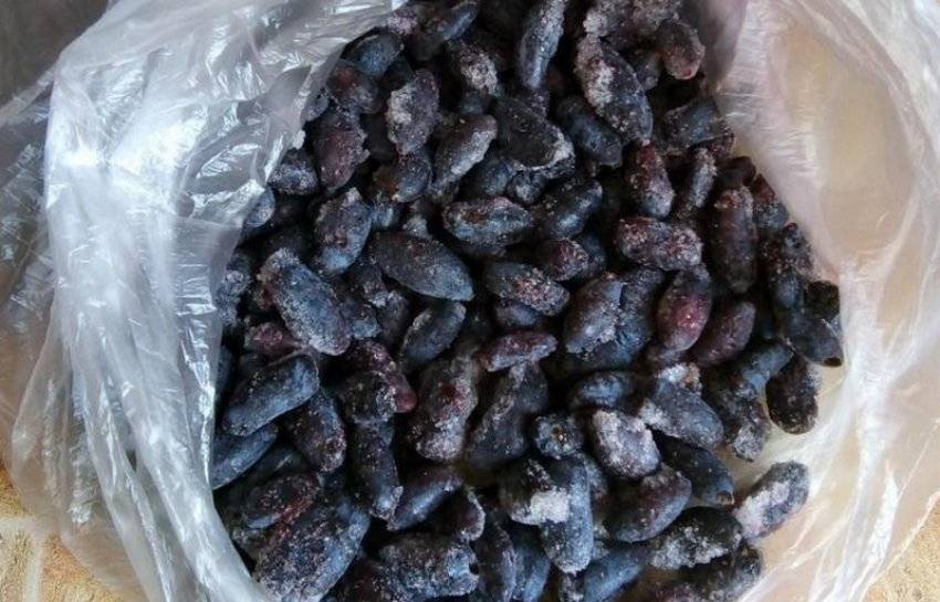 - для хранения и транспортировки можно использовать только упругие ягоды без трещин и гнили — остальную жимолость немедленно используют для переработки;