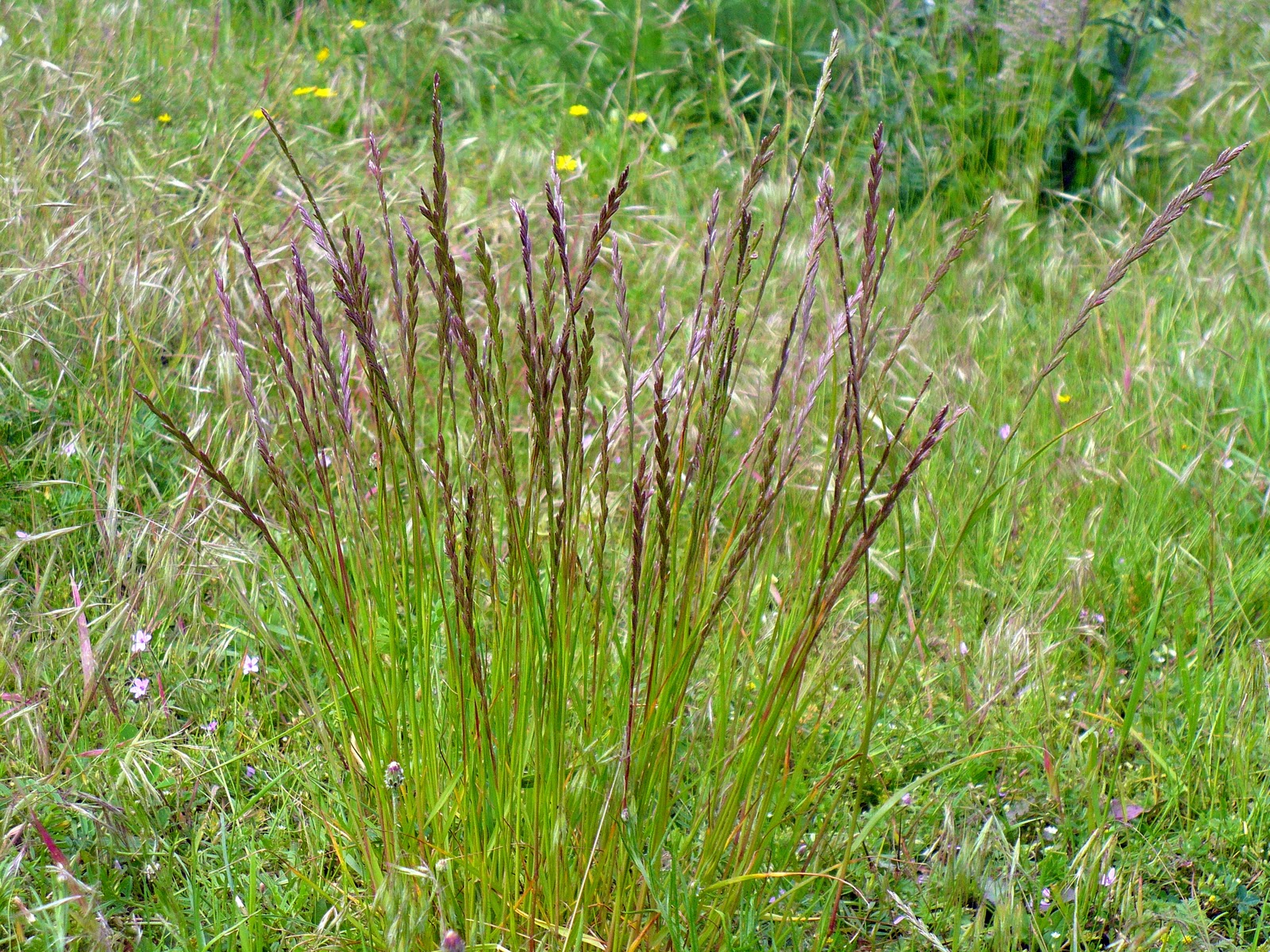 Многолетняя трава с рыхлой структурой. Принадлежит к райграсу широколистному. Пектиновые колосья до 6 см длиной и 1,0-2,3 см шириной, довольно плотные, с близко расположенными, часто пурпурного цвета, волосистыми колосками. Шипы с 3-10 цветками.