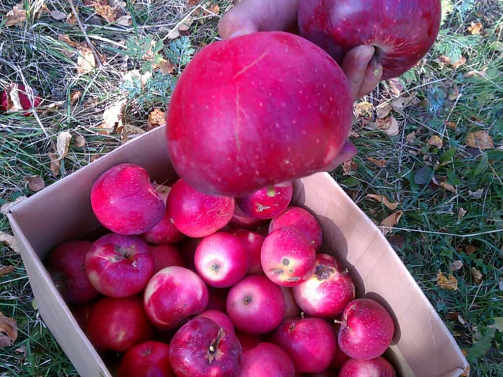 Яблоки собирают в данном случае в конце сентября, поскольку сорт Апорт позднеспелый. Если позволяет погода, рекомендуем на некоторое время оставить плоды повисеть на дереве созревшими — от этого значительно улучшается их вкус, становится ярче, насыщеннее.